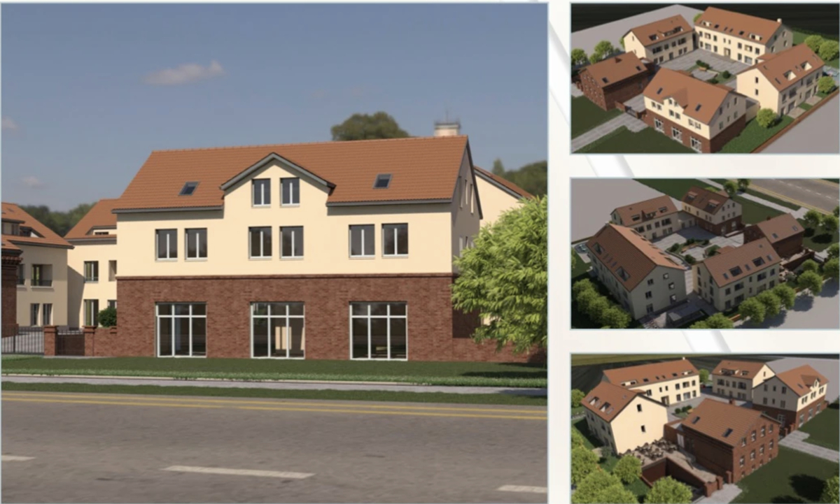 Im genehmigten Projekt ist die Bebauung der Gesamtfläche mit fünf Massivgebäuden im Stil eines kleinen Wohnparks geplant. Die beiden straßenseitigen Gebäude sind für Mischnutzung mit Gewerbe vorgesehen.