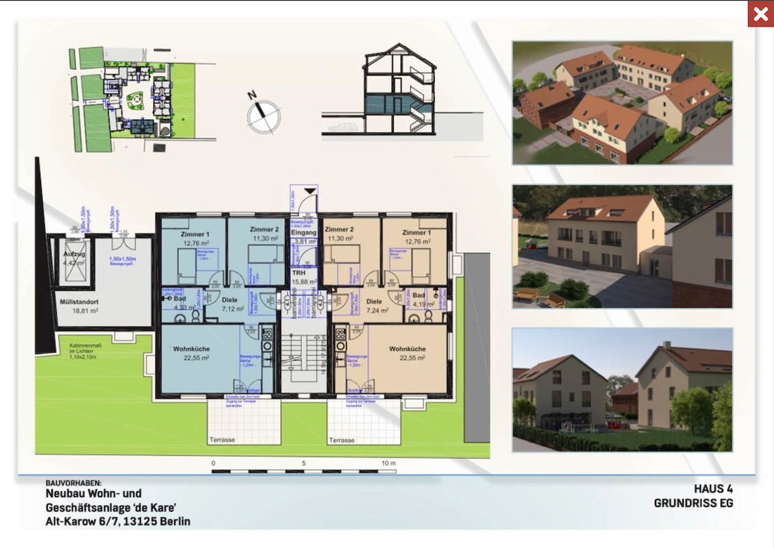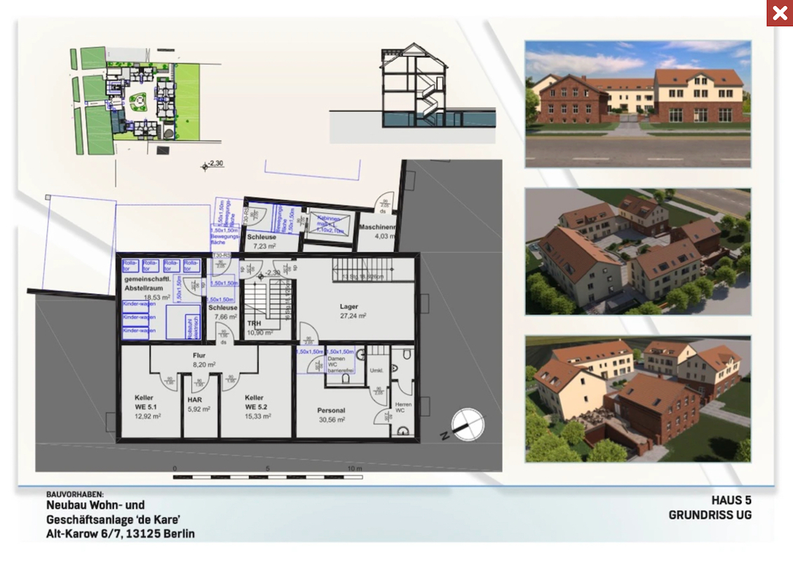 Eine Gelegenheit - Platz für 5 Gebäude und Tiefgarage Grundstücks- und baurechtlich genehmigter Projektkauf "de Kare" mitten in Berlin Karow